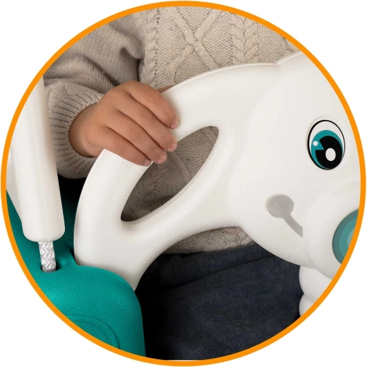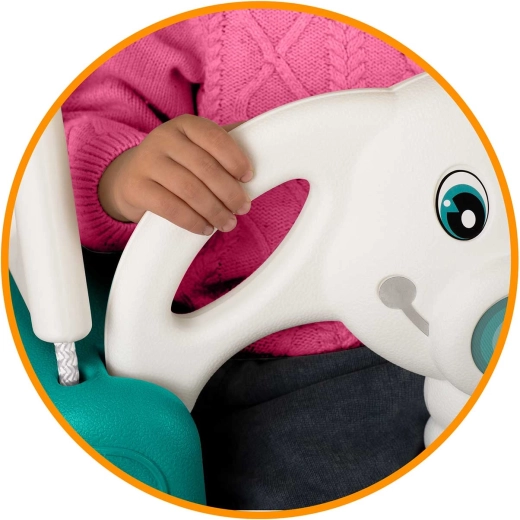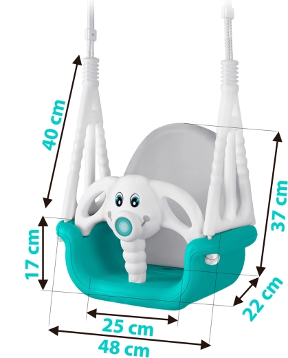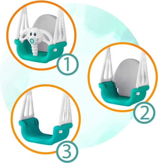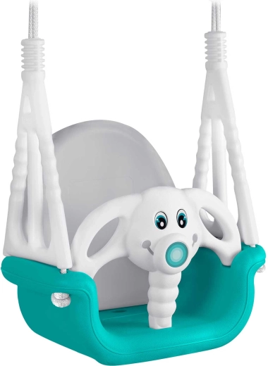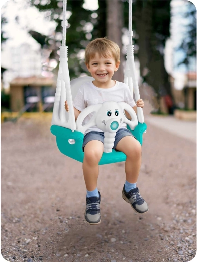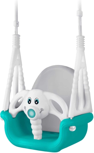 Balançoire enfant universelle 3-en-1 au motif amusant d’éléphanteau, qui grandit avec votre enfant de 6 mois à 10 ans. Elle offre un dossier haut, une barre de sécurité avant et des cordes solides et réglables pour se balancer en toute sécurité à la maison comme à l’extérieur. Conception en plastique imperméable résistante, assise antidérapante et certifications CE, GS pour la tranquillité d’esprit des parents.