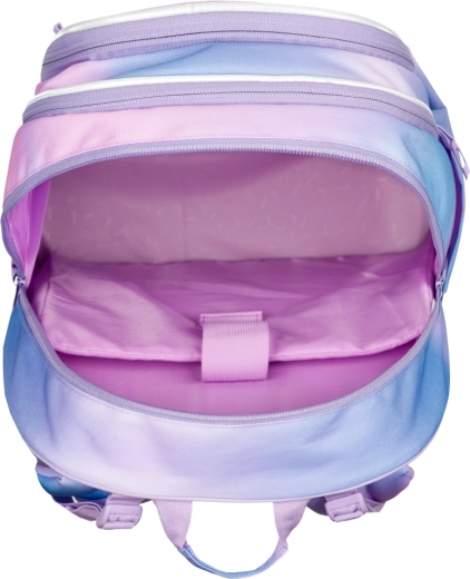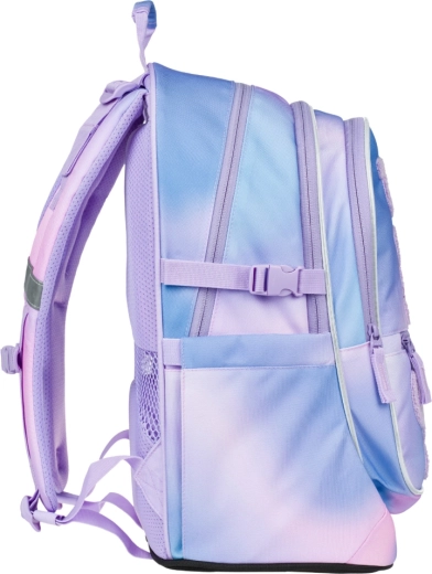 La trousse, le sac de sport, la banane et la housse pour ordinateur assortis au sac à dos, en dégradé pastel. Un équipement pratique pour l’école et le temps libre, réuni en un seul pack.