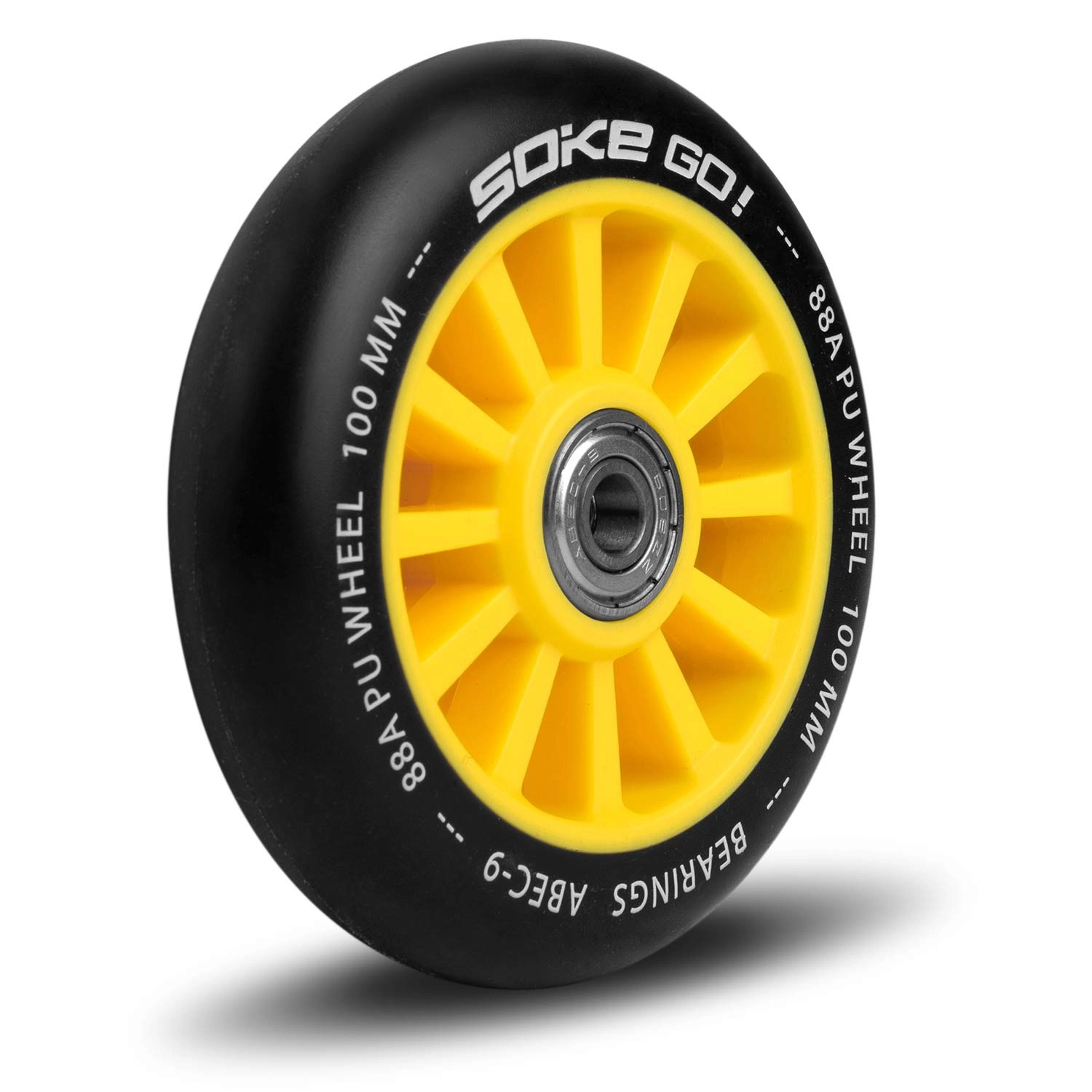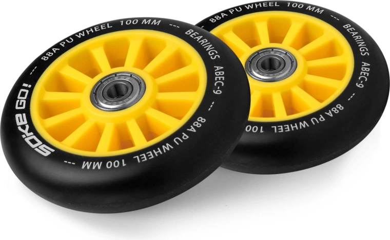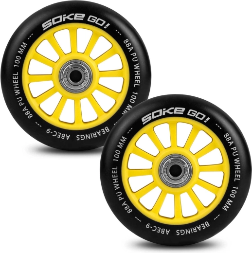 Roues jaunes pour trottinette 100 mm SOKE – lot de 2 pièces