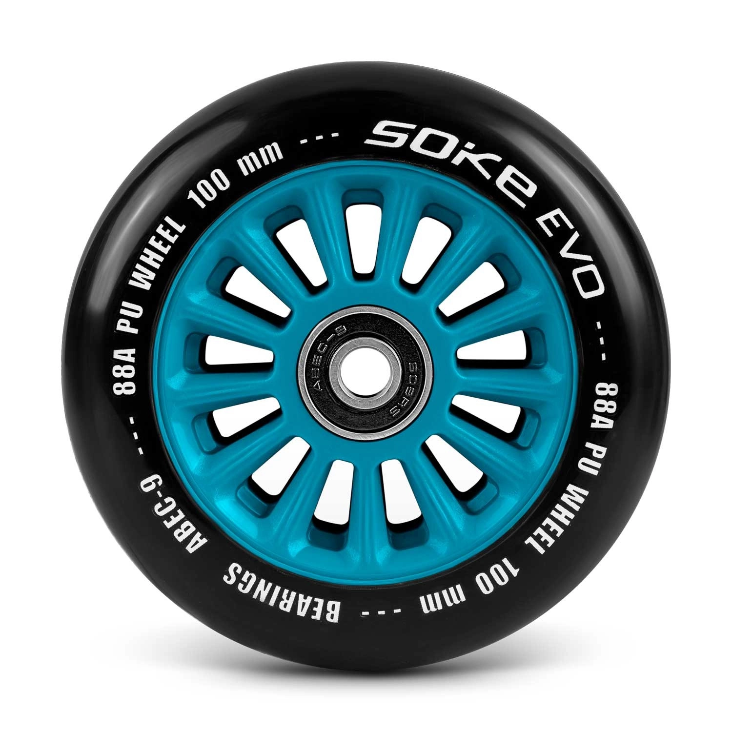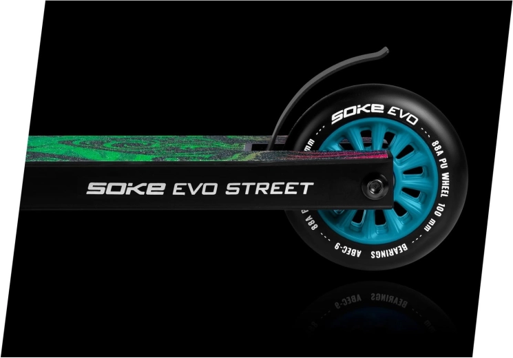 Les roues SOKE sont fabriquées dans un mélange de polyuréthane résistant avec une dureté de 88A pour une excellente adhérence et un contrôle optimal. Les roulements intégrés ABEC-9 contribuent à une vitesse élevée et à une rotation fluide, appréciées autant par les débutants que par les riders confirmés.