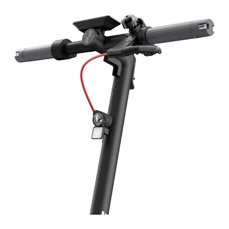 Pour votre sécurité en circulation urbaine, elle dispose de clignotants lumineux certifiés E‑mark, d’un puissant éclairage avant et d’une combinaison efficace de frein à tambour avant et d’E‑ABS arrière. Le système de récupération d’énergie prolonge l’autonomie lors du freinage et de la décélération, rendant la conduite plus efficiente. La trottinette propose plusieurs modes de conduite, y compris la marche, pour s’adapter aux différentes situations sur votre trajet.