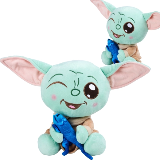 Apportez la magie de la galaxie chez vous avec l’emblématique Grogu (Baby Yoda). Cette figurine en peluche de qualité séduit par son matière douce et moelleuse et ses traits du visage soigneusement brodés. L’accessoire amusant en forme de petit poisson bleu renvoie à des scènes mémorables de la série et donne un caractère unique à la peluche.