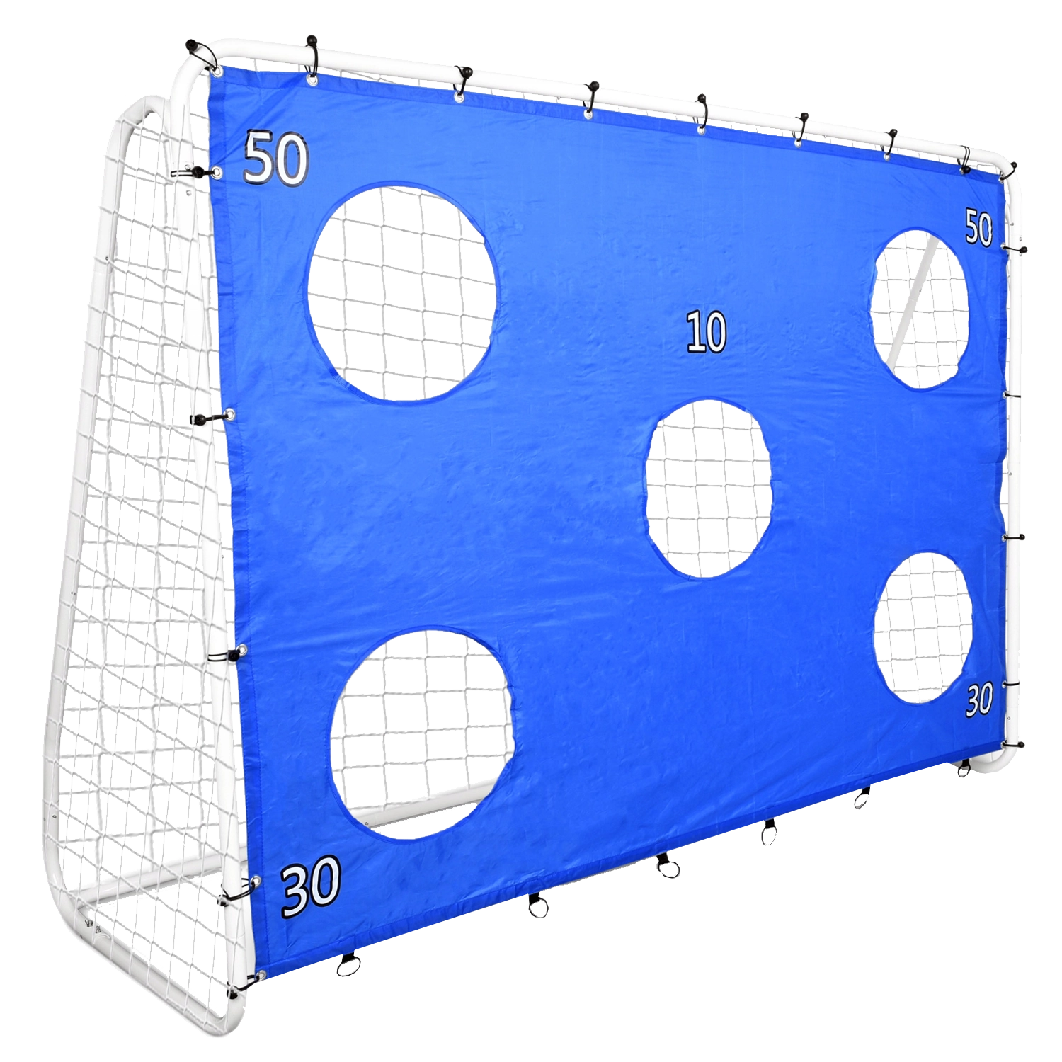 Améliorez la précision et la puissance de vos tirs grâce à la bâche cible à ouvertures incluse, qui transforme chaque séance en défi. Le cadre en acier avec tubes à paroi épaisse et ancres au sol assure la stabilité, tandis que le filet de qualité arrête les ballons en toute sécurité.