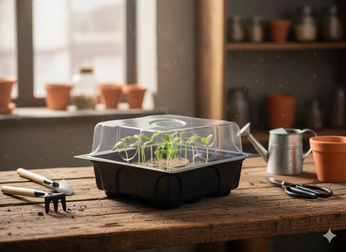 La mini-serre agit comme un petit serre-châssis pour fenêtre, balcon ou rebord. Elle maintient une chaleur et une humidité stables, augmentant le taux de réussite de la germination et simplifiant le repiquage sans endommager les racines.