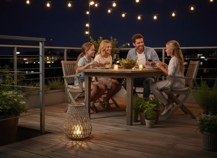 Une poignée robuste permet de transporter ou de suspendre la lanterne facilement. Parfaite pour la terrasse ou le balcon lors des soirées.