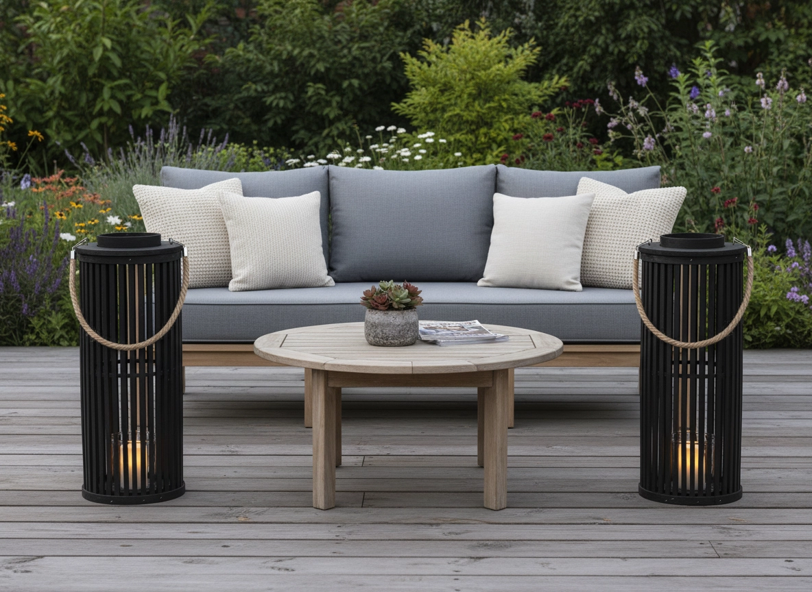 La grande lanterne noire est un accessoire marquant pour la terrasse, le jardin et le salon. Grâce à l’insert en verre, la bougie est protégée et la lumière se diffuse agréablement entre les lamelles. Son design s’intègre aux intérieurs modernes, rustiques ou boho.