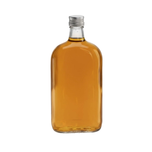Élégante bouteille plate en verre de 500 ml, idéale pour les liqueurs maison, spiritueux, sirops et jus de fruits. Grâce au verre transparent, la couleur de la boisson ressort magnifiquement et le design simple et intemporel convient aux mariages, aux fêtes et comme cadeau original. Elle est fournie avec un bouchon à vis en aluminium de 28 mm, qui assure une fermeture étanche et protège le contenu.