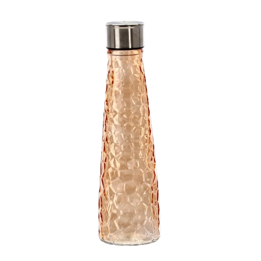 Cette bouteille en verre de 0,5 litre allie design élégant et praticité. Le corps en verre résistant avec un motif martelé/facetté discret tient bien en main et aide à prévenir les glissements. Le bouchon à vis en acier inoxydable assure une étanchéité sûre, vous pouvez donc transporter la bouteille sans crainte dans un sac ou un sac à dos.