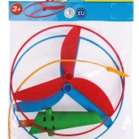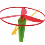 Le pack comprend deux hélices qui peuvent être facilement lancées à l'aide d'un mécanisme sur la poignée verte. Les couleurs rouge et bleu vives des rotors ajoutent une attraction visuelle supplémentaire au jouet et stimulent l'imagination des enfants.