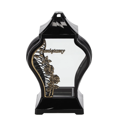 Cette lanterne au design noir‑doré avec un motif discret de rose grimpante est un excellent choix pour ceux qui recherchent une décoration élégante et de bon goût pour la tombe. Sa hauteur de 30 cm assure une bonne visibilité et stabilité, tandis que l’association intemporelle des couleurs souligne le caractère digne du lieu de repos.