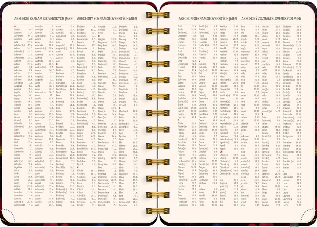 - hebdomadaire, tchéco‑slovaque, avec prénoms et jours de fête
