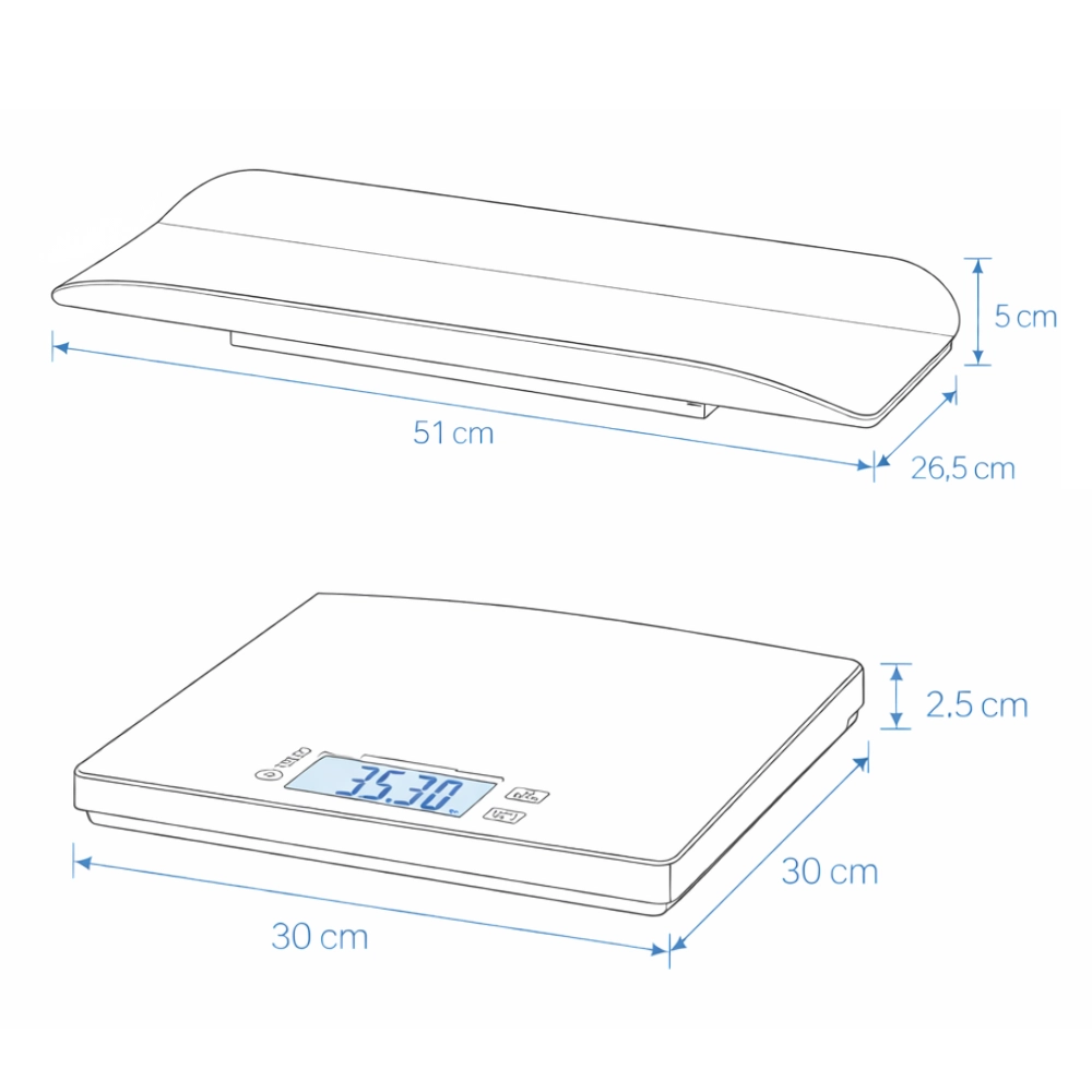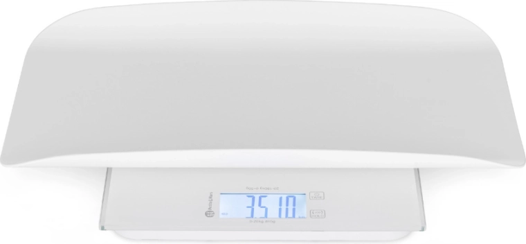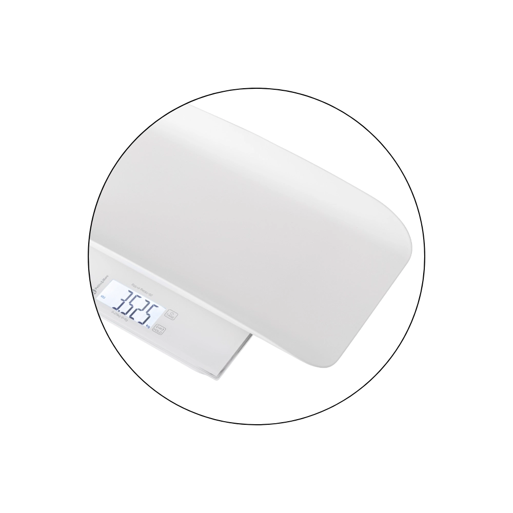 La cuvette ergonomique en plastique offre stabilité et confort au bébé. En un seul clip, transformez la balance standard en balance pour nourrissons précise avec une plage de 0,1–20 kg.