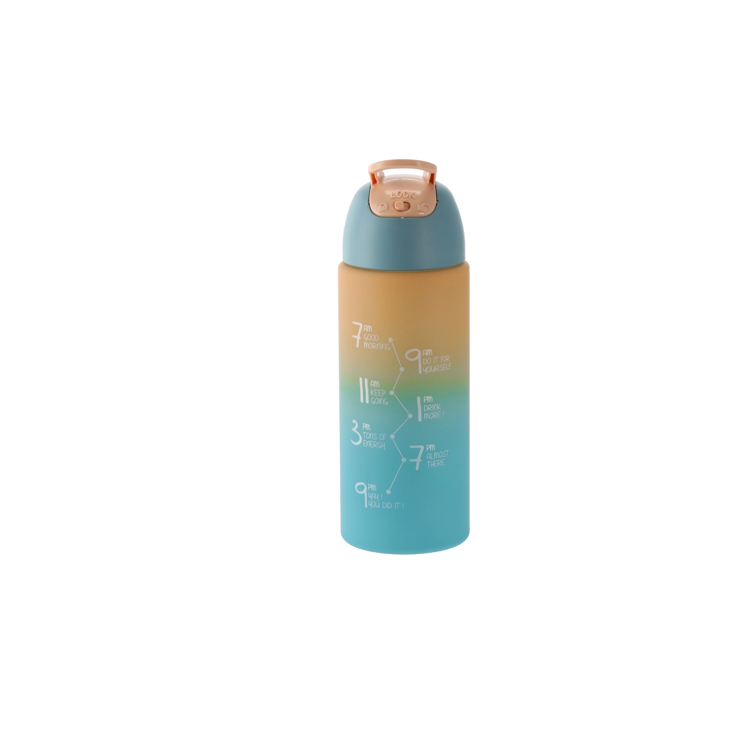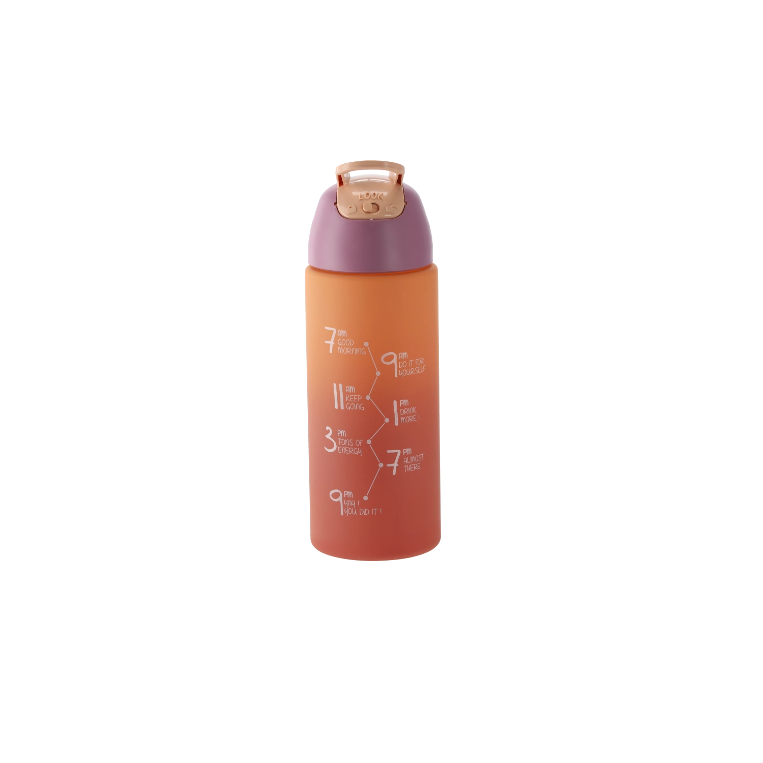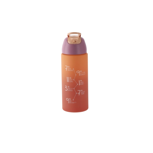 Le corps translucide avec graduations en millilitres facilite le suivi de votre hydratation quotidienne. Sa forme compacte s’insère facilement dans les porte-gobelets et les poches latérales de sac à dos – idéale pour le sport, l’école et le bureau.