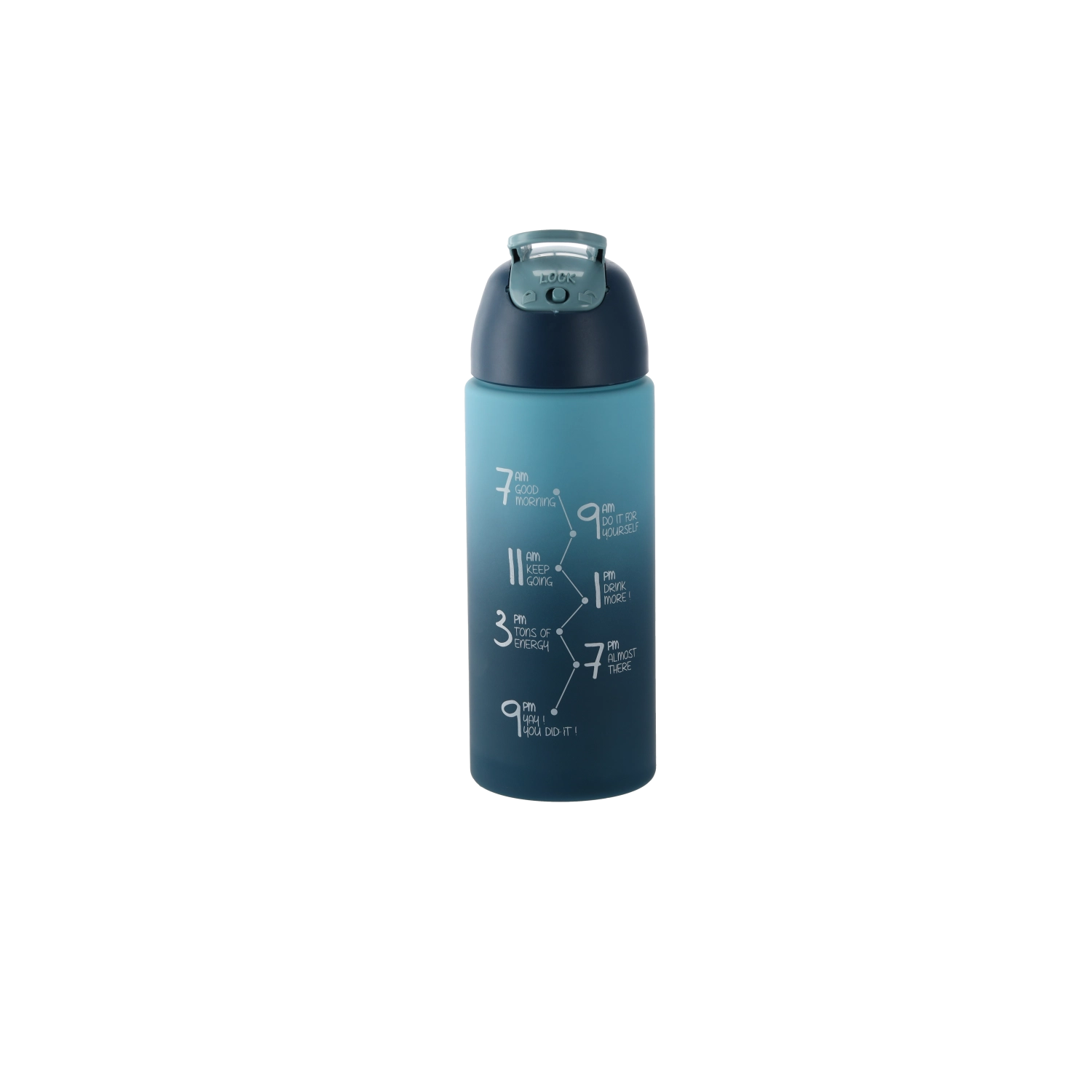 Cette bouteille d’eau légère et résistante de 500 ml associe un design ombré moderne dans des nuances de bleu foncé et bleu clair à des fonctionnalités pratiques pour une utilisation quotidienne. Le bouchon flip-top permet une ouverture rapide d’une seule main et l’embout verrouillable minimise le risque de fuite dans le sac.