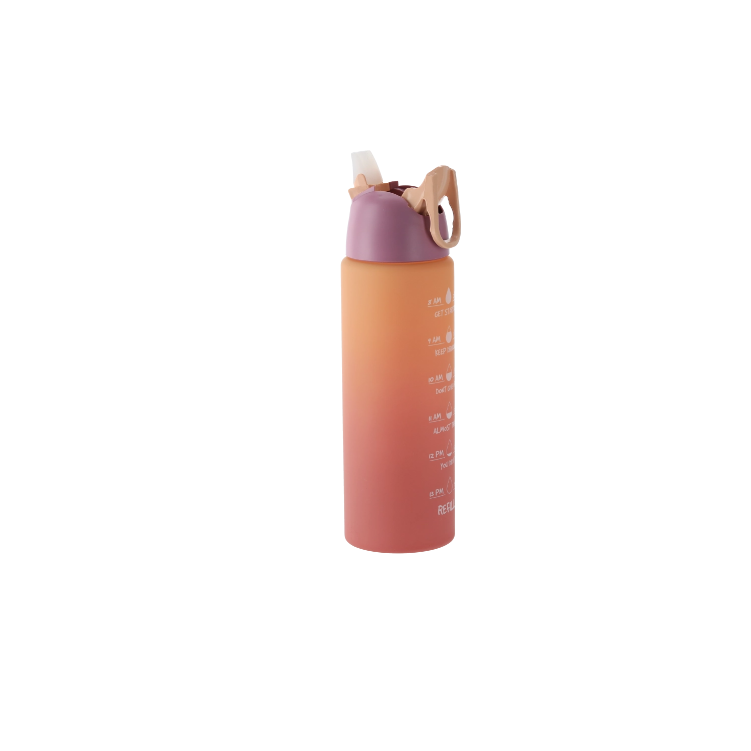 Cette gourde au dégradé ombré dans des tons rose‑orange allie design moderne et fonctionnalité. Son corps en plastique PC résistant est léger, idéal en déplacement et pensé pour tenir confortablement dans les porte-gobelets de voiture et la poche d’un sac à dos. Les repères horaires intégrés sur le côté vous motivent à boire régulièrement tout au long de la journée.