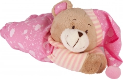 Ce mignon ourson est un compagnon idéal, de jour comme de nuit. En pyjama rose, c’est un ami qui ne vous quittera jamais, et c’est un cadeau idéal pour les tout-petits. L’ourson stimule l’imagination des enfants et peut être suspendu, vous pouvez donc facilement l’attacher au lit d’enfant ou à la poussette. Il joue une berceuse apaisante « Bonsoir, bonne nuit », qui aidera votre enfant à s’endormir facilement.