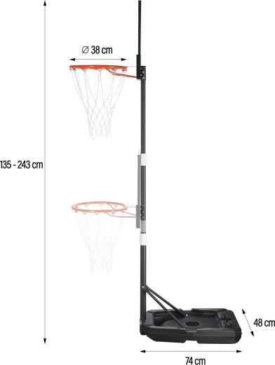 Profitez du basket partout avec le panier portable NILS ZDK001. Il offre une hauteur réglable en continu de 135 à 243 cm, un panneau en polycarbonate résistant aux chocs, un cercle en acier robuste de 38 cm et une base stable avec roulettes pour un déplacement facile. Idéal pour les enfants, les ados et les adultes au jardin, dans l’allée ou à la maison de campagne.