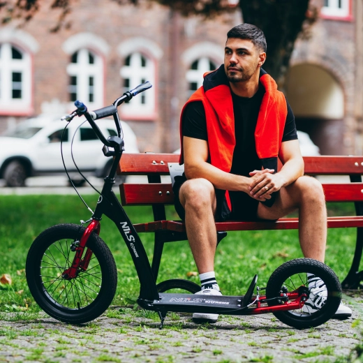 La trottinette NILS Extreme avec roues 16/12 est conçue pour les citadins actifs qui recherchent confort, sécurité et style. Les grandes roues gonflables agissent comme des amortisseurs naturels, franchissent aisément pavés, bordures et allées de parc, et garantissent une excellente adhérence.