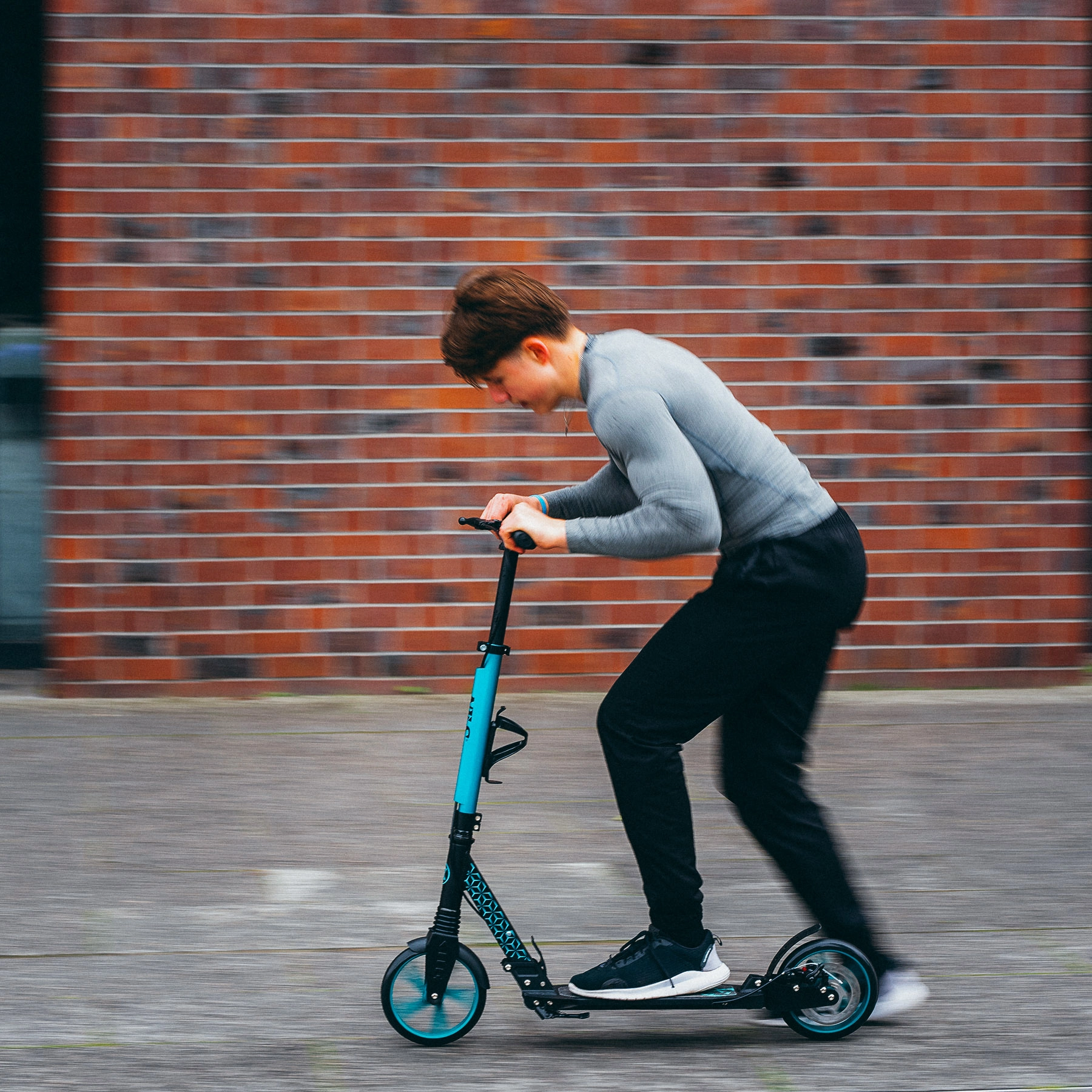 Les grandes roues en polyuréthane (200 mm) et les roulements ABEC 7 minimisent les vibrations et assurent un déplacement souple sur trottoirs urbains comme sur asphalte.