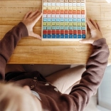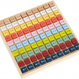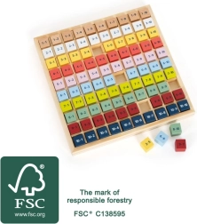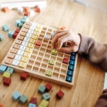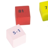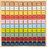 Des cubes en bois colorés avec des exercices motivent les enfants à découvrir et à réviser la table de multiplication chaque jour.