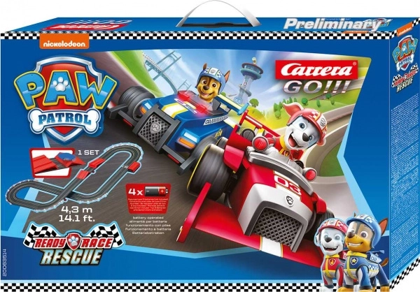 Amusant circuit CARRERA GO au thème de la Pat' Patrouille offrant aux enfants dès 5 ans un circuit de 4,3 m avec les voitures Chase et Marshall. Le set propose un tremplin, un pont, des lignes droites et des virages, et une alimentation par piles avec possibilité d’acheter un transformateur. Compatible avec les voitures et pièces GO!!! pour encore plus de fun.