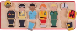 Rendez l’apprentissage amusant avec le puzzle en bois Équipe de secours. Ce puzzle haut en couleur propose six personnages de secouristes — pompier, officier de police, médecin et autres — qui s’insèrent dans les emplacements découpés sur le plateau.