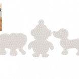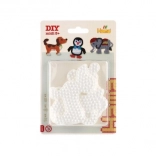 Le kit Hama de plaques pour perles à repasser permet aux enfants dès 5 ans de créer des images colorées grâce aux plaques en plastique blanc en forme d'éléphant, de pingouin et de chien.