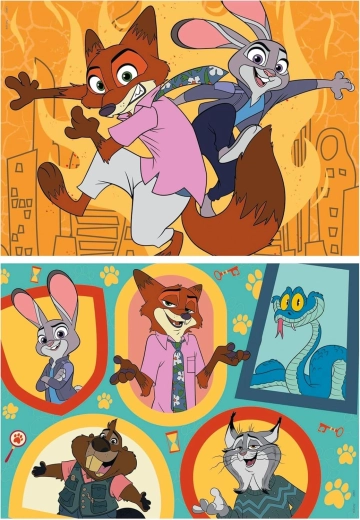 Puzzle pour enfants de la marque EDUCA avec le motif ZOOTROPOLIS comprenant deux puzzles de 48 pièces chacun, de mêmes dimensions. Ils séduisent par leurs couleurs vives, leurs motifs attrayants et leur qualité de fabrication, favorisant le développement de la motricité fine et de la patience.