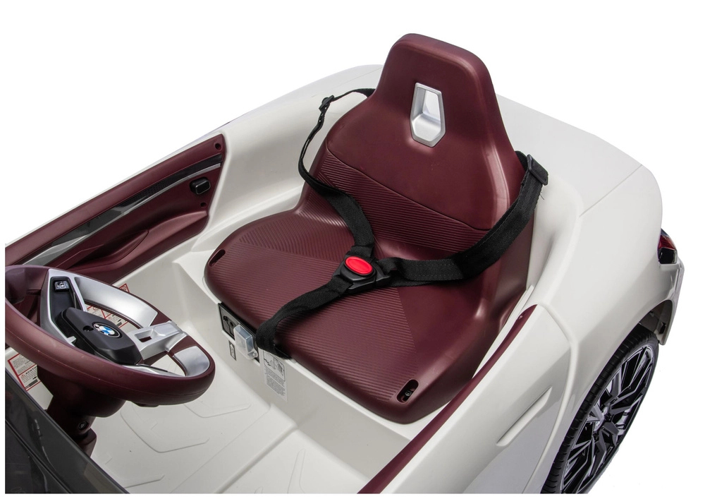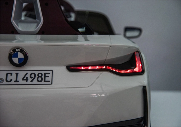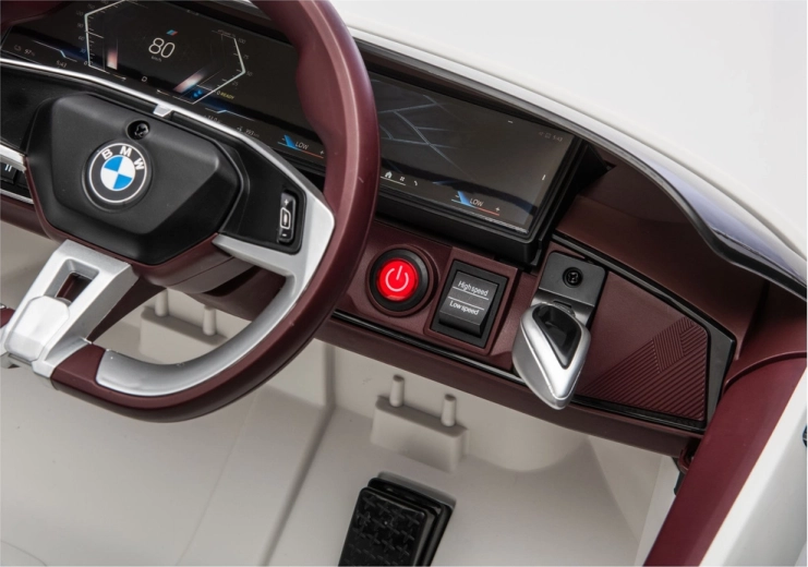 Une élégante voiture électrique pour enfants BMW i4 4x4 en blanc raffiné offre une expérience de conduite réaliste, une assise sûre et une construction robuste. Grâce à son design sportif, à ses phares détaillés et à ses portes ouvrantes, les petits conducteurs s'amuseront autant à la maison qu'à l'extérieur.