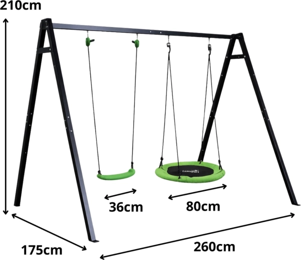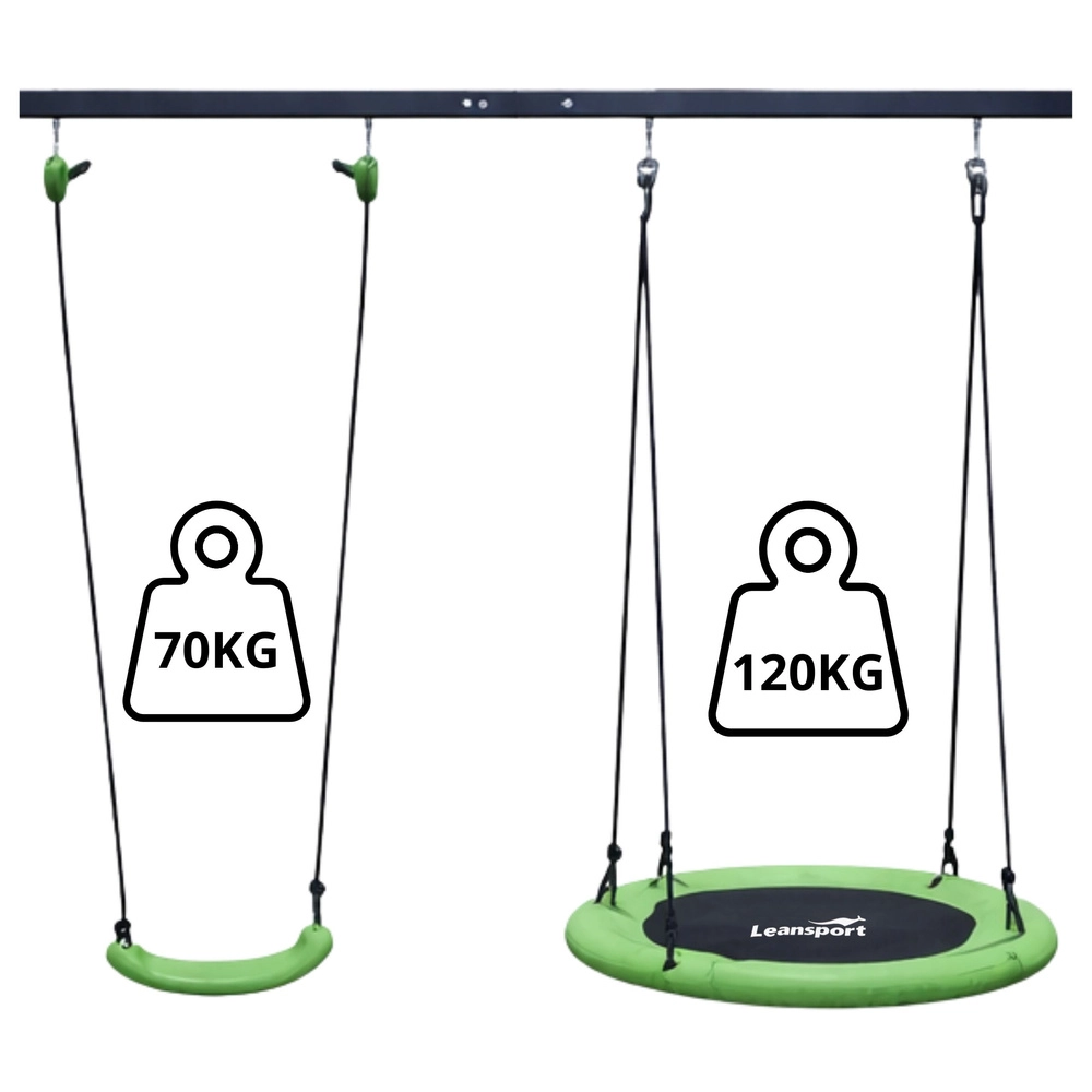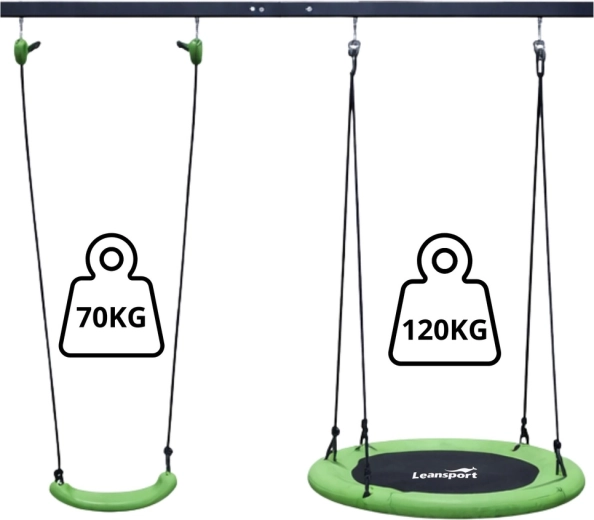 - Divertissement polyvalent : deux sièges différents pour des styles de balançoire variés.