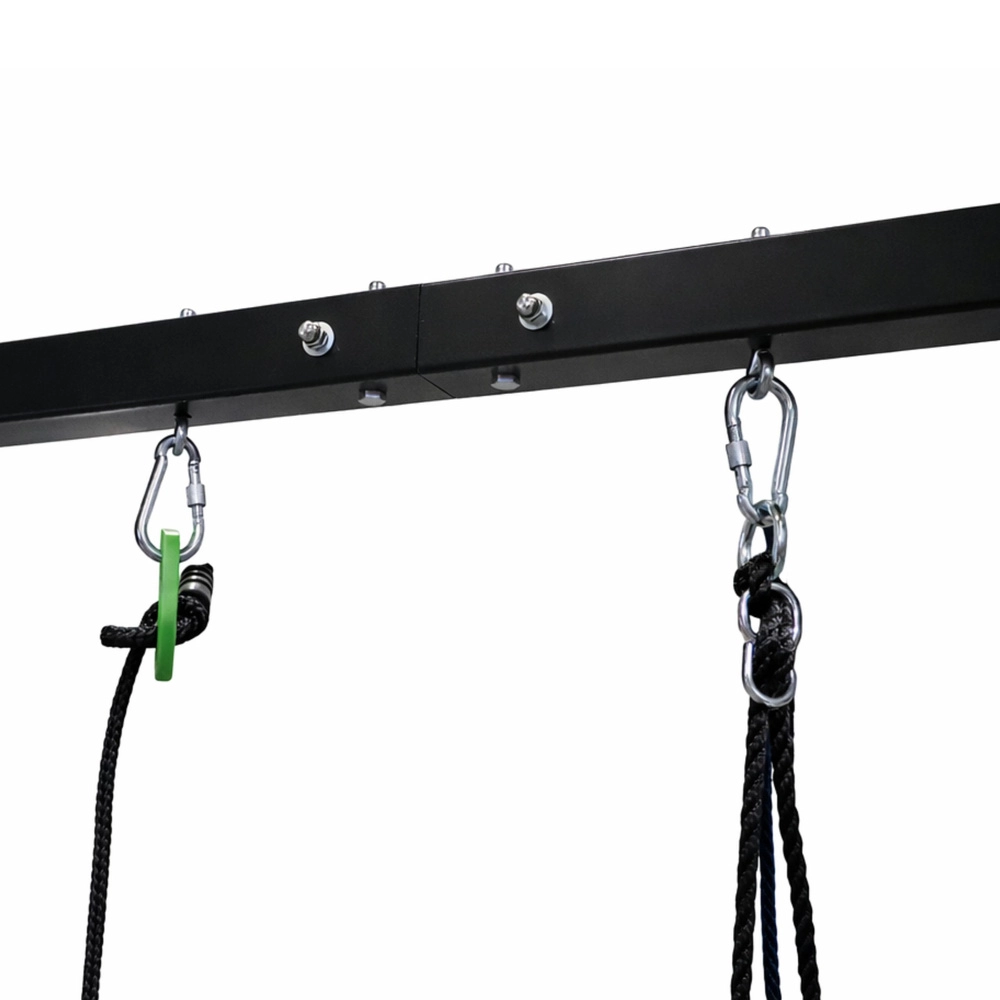 - Cadre en acier, 2× siège, cordes de montage, kit d’ancrage, éléments de fixation