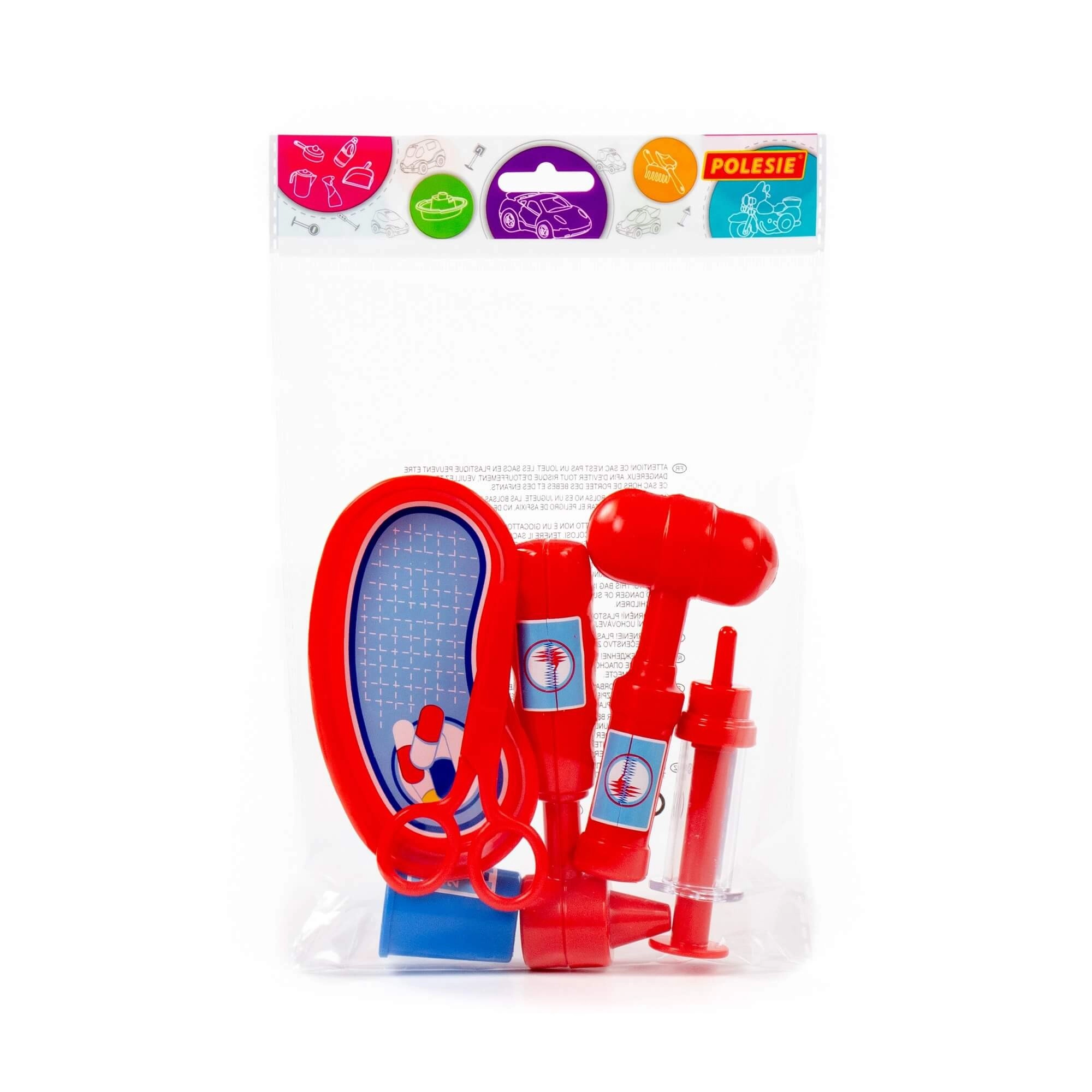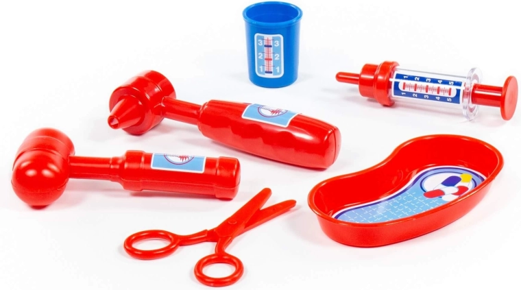 Amusant set de docteur pour enfants avec 6 instruments essentiels (ciseaux, seringue, coupelle, otoscope, marteau à réflexes et doseur) qui stimule l’imagination, l’empathie et aide à réduire la peur du milieu médical. Idéal pour jouer à la maison ou avec des amis.