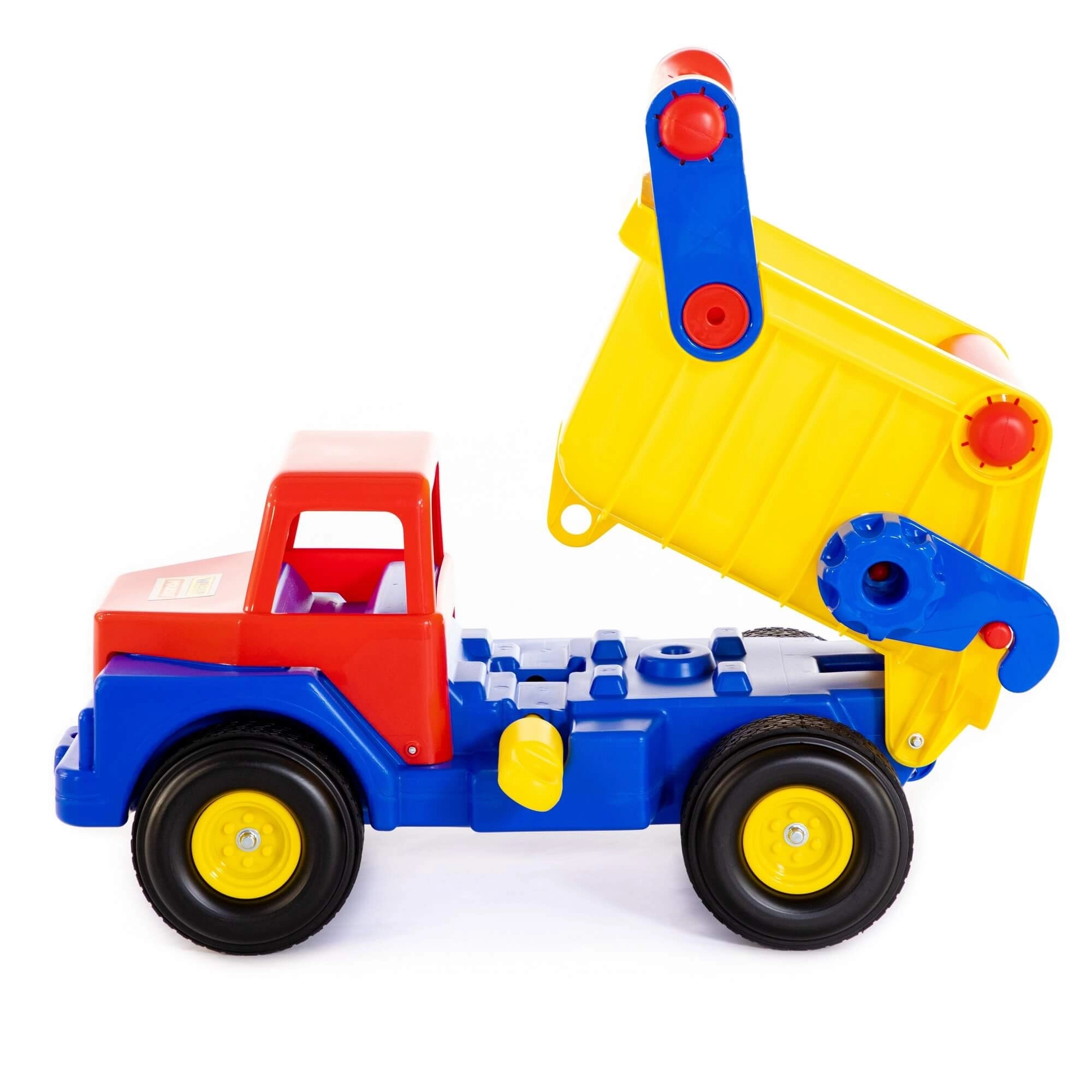 Cette benne basculante colorée en plastique est idéale pour les petits bâtisseurs. Grâce à sa structure résistante et à ses roues en caoutchouc souple, la conduite est silencieuse et fluide, aussi bien à la maison qu'à l'extérieur. Les enfants peuvent facilement soulever la benne basculante et transporter du sable, des cailloux ou des cubes.