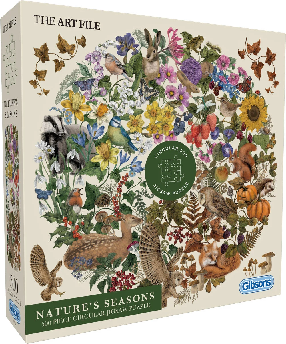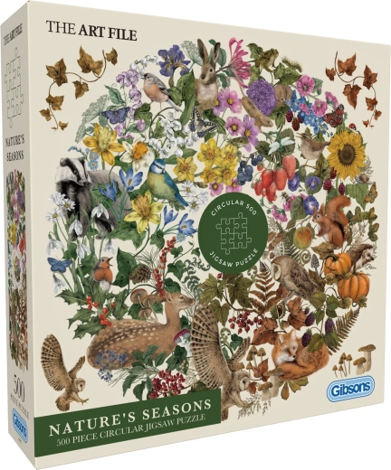 Offrez-vous un moment de détente avec les puzzles ronds GIBSONS, illustrant la nature au printemps, en été, en automne et en hiver. Les 500 pièces finement découpées forment un cercle harmonieux, idéal à encadrer une fois terminé. Le poster inclus vous aide à mieux vous repérer dans le motif, rendant l’assemblage agréable même pour les débutants.