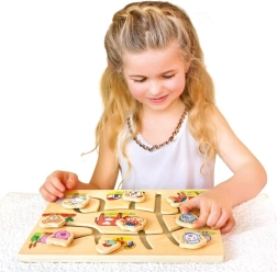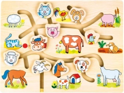Découvrez le charme de ce puzzle en bois sur le thème de la ferme domestique, conçu pour encourager le développement de l'enfant. Le labyrinthe est conçu pour améliorer de manière ludique et interactive la motricité fine et la coordination œil-main. Les enfants apprennent non seulement à reconnaître les différents animaux mais exercent aussi leur orientation spatiale et leur pensée logique.