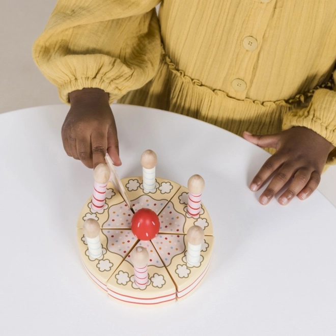 Six parts reliées par un scratch permettent aux enfants de couper, de partager et de reconstituer facilement le gâteau. Les bougies et les parts prêtes à servir ne manquent pas pour une fête d’anniversaire complète.