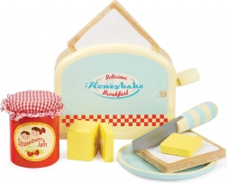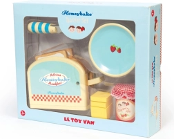 Le set en bois Honeybake de LE TOY VAN transforme le coin des enfants en une cuisine chaleureuse. Ils adoreront le grille-pain réaliste à ressort d’où jaillissent deux tranches de « toast » après avoir appuyé. Le beurre avec attache scratch apprend la bonne prise en main et l’utilisation du petit couteau, tandis que le pot de confiture de fraises et l’assiette complètent chaque petit-déjeuner ludique.