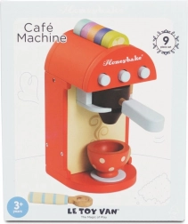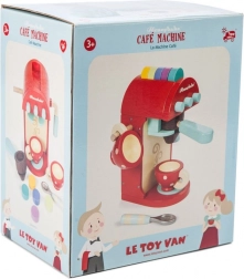 Cette machine à café en bois de qualité offre aux enfants une expérience authentique de préparation du café. Les capsules colorées peuvent être insérées dans la manette pour « préparer » la boisson directement dans la tasse peinte ; le mousseur à lait et la cuillère sont également inclus. Les capsules se rangent facilement dans l’ouverture sur le dessus de la machine, tout reste ainsi à portée de main.