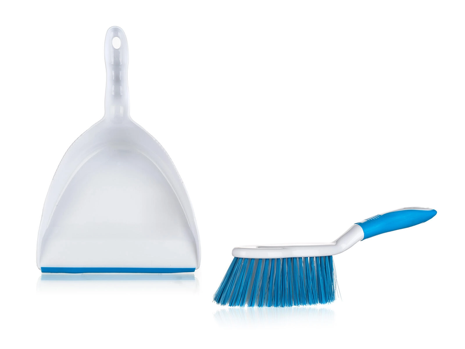 Le set bleu‑blanc EXCLUSIVE allie élégance, fonctionnalité et confort. La pelle avec bord en caoutchouc flexible adhère parfaitement au sol et retient même la poussière fine, tandis que la balayette aux poils denses et résistants balaie facilement miettes, poils et poussières sur les surfaces lisses.