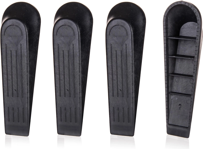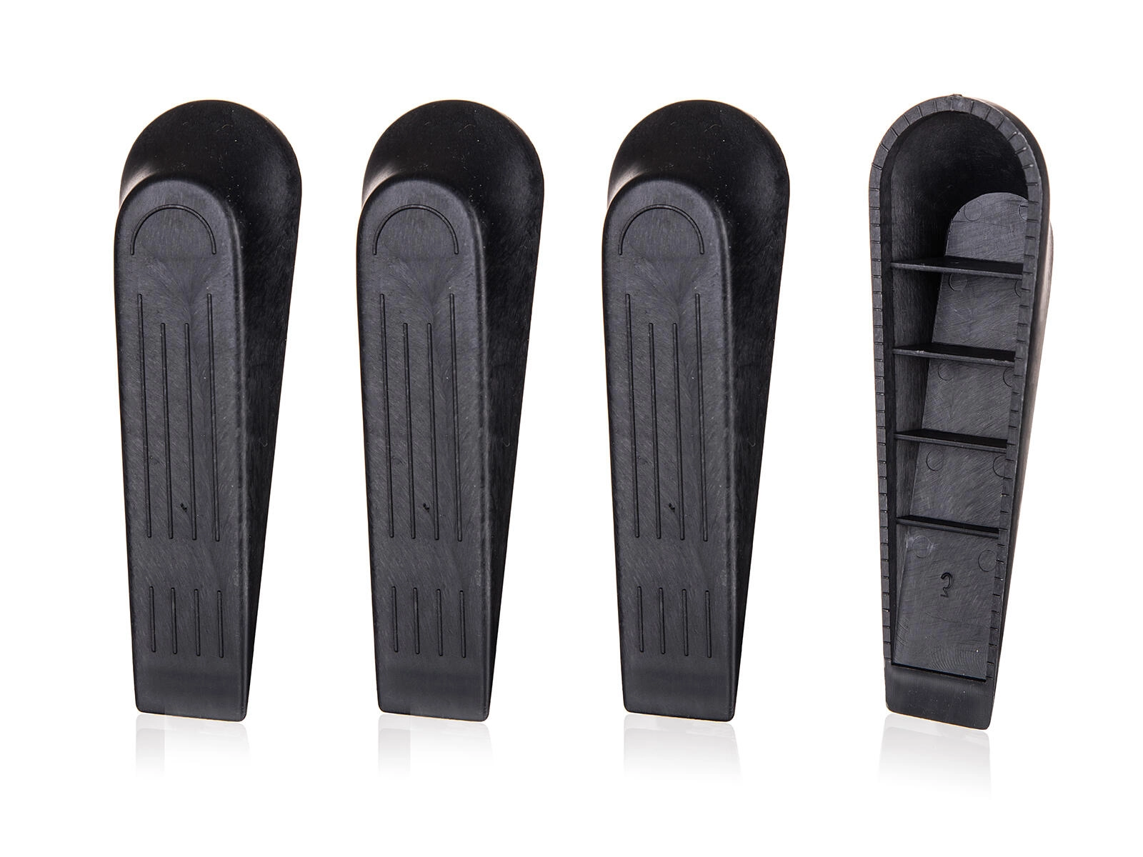 Pratique lot de quatre butées de porte en forme de coin qui maintiennent vos portes solidement ouvertes et protègent murs et meubles des dommages. Le matériau résistant et les rainures antidérapantes assurent une fixation ferme sur différents types de sols. Une solution simple et efficace pour la maison et le bureau.