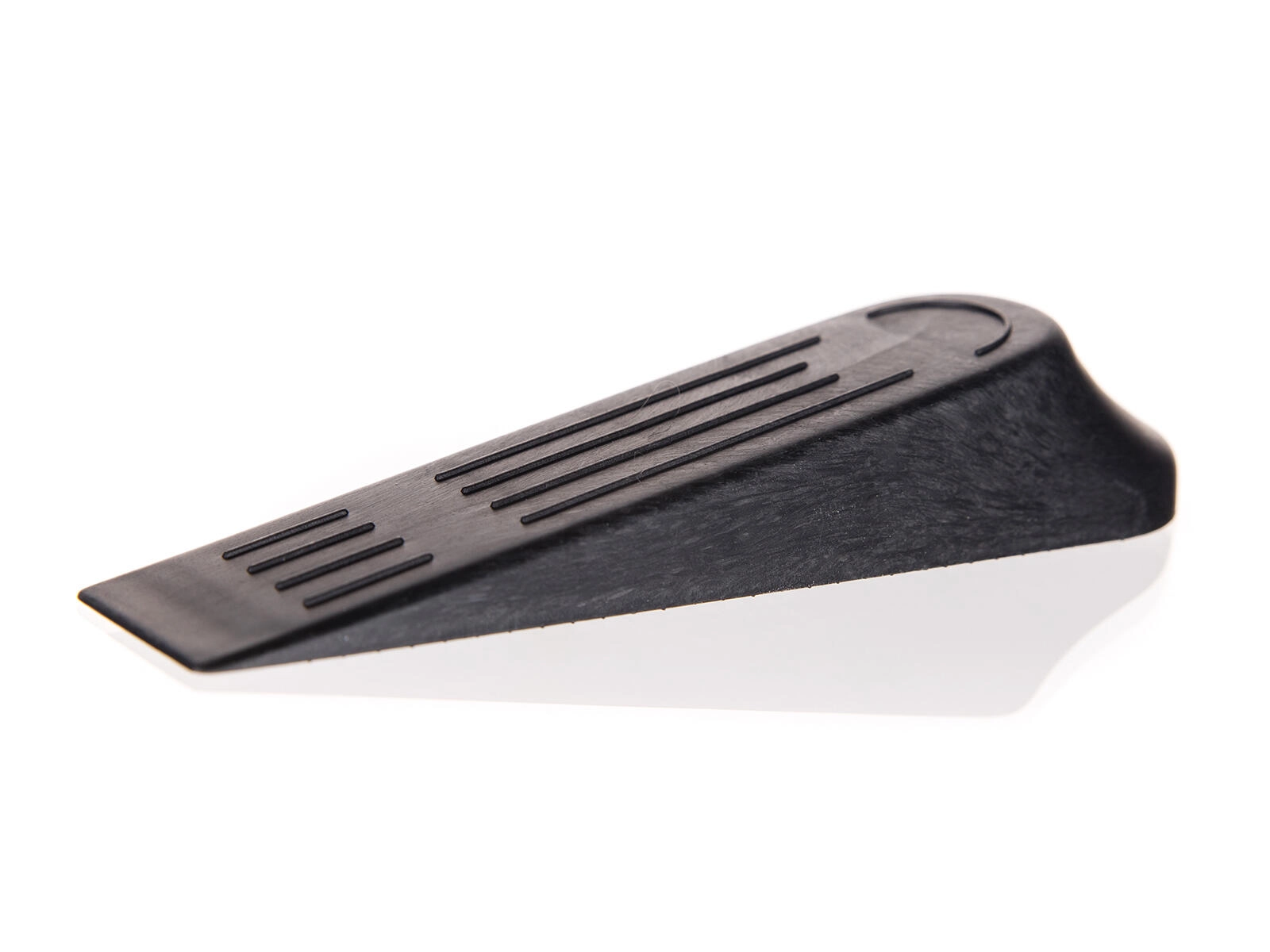 La surface rainurée augmente la friction et empêche le glissement du coin comme de la porte sur les sols lisses.