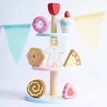 Le présentoir en bois est conçu pour encourager la créativité et l’imagination des enfants. Les pâtisseries peuvent aussi servir pour un goûter imaginaire avec des amis en peluche.