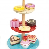 Le présentoir à pâtisseries à étages de Le Toy Van est le jouet idéal pour vos enfants. Chaque niveau propose des pâtisseries colorées, comme des donuts et des cupcakes, qui stimulent l’imagination et la créativité. La sécurité est assurée par des bords arrondis et l’utilisation de peintures non toxiques à base d’eau.