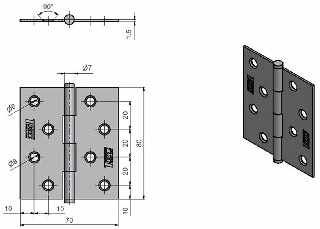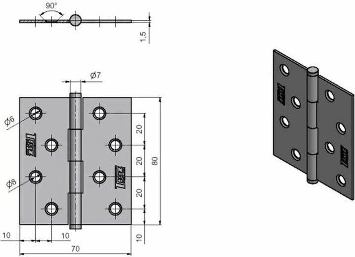 Penture fiable pour montage dans l’ouvrant de porte, longueur 80 mm, idéale pour des applications intérieures et techniques. La galvanisation assure une résistance à la corrosion et une fonctionnalité durable même en cas d’utilisation fréquente.