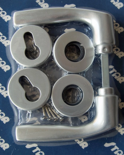 La quincaillerie est en version béquille–béquille pour portes avec barillet cylindrique et est fournie dans un emballage pratique avec tout le matériel de fixation pour une installation simple et rapide.