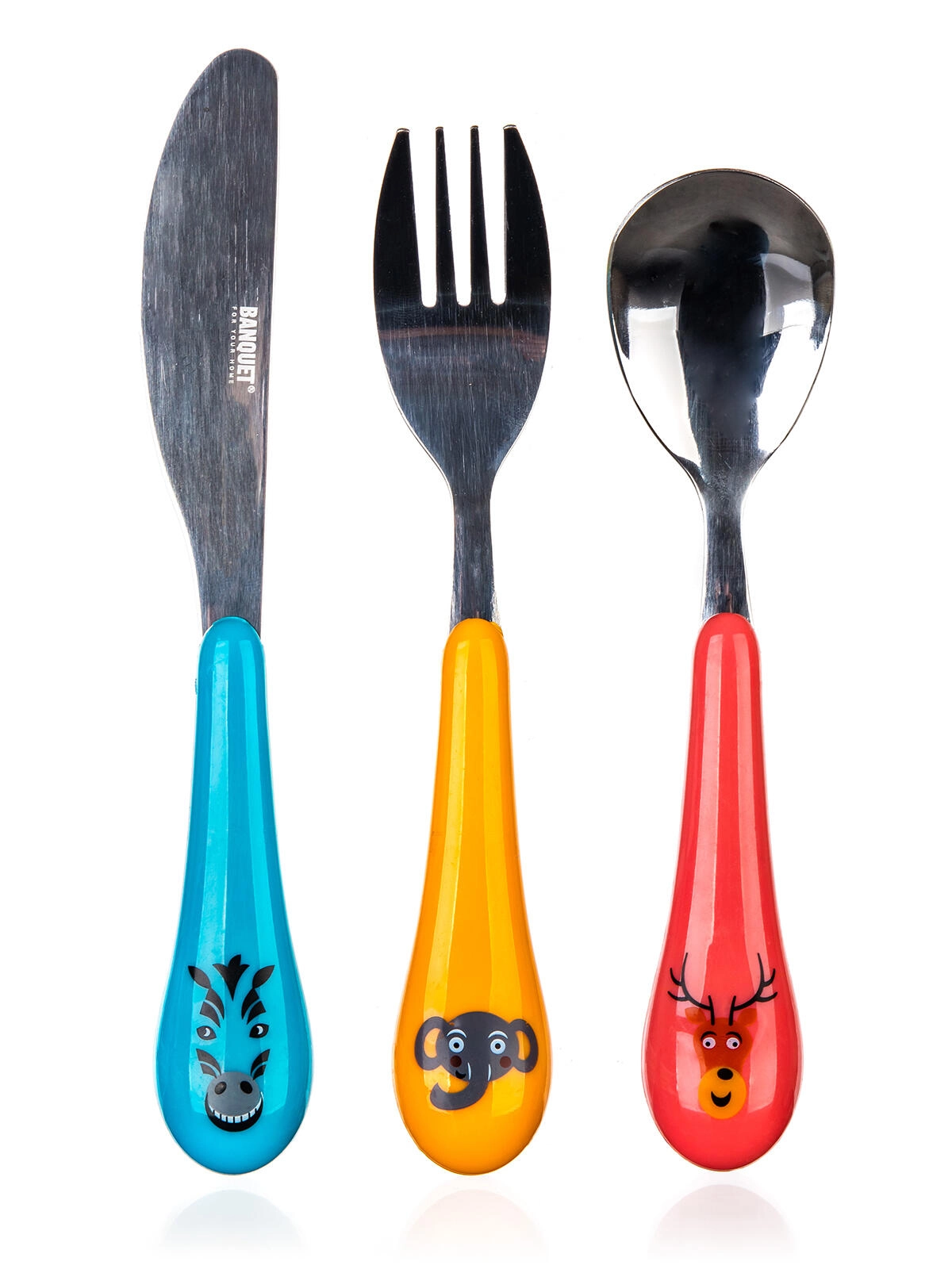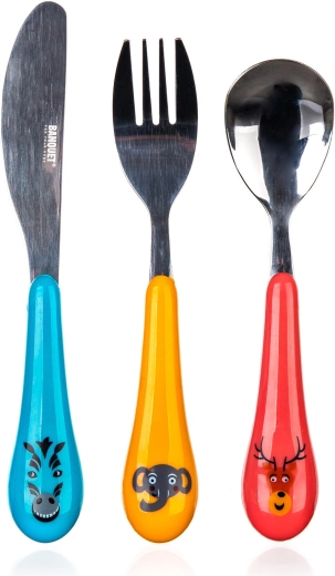 Ce set de 3 pièces contient tout ce dont les enfants ont besoin pour un repas confortable : une cuillère, une fourchette et un couteau. Grâce aux motifs ludiques du ZOO, chaque repas devient un moment amusant et les enfants acquièrent plus rapidement de bonnes habitudes.