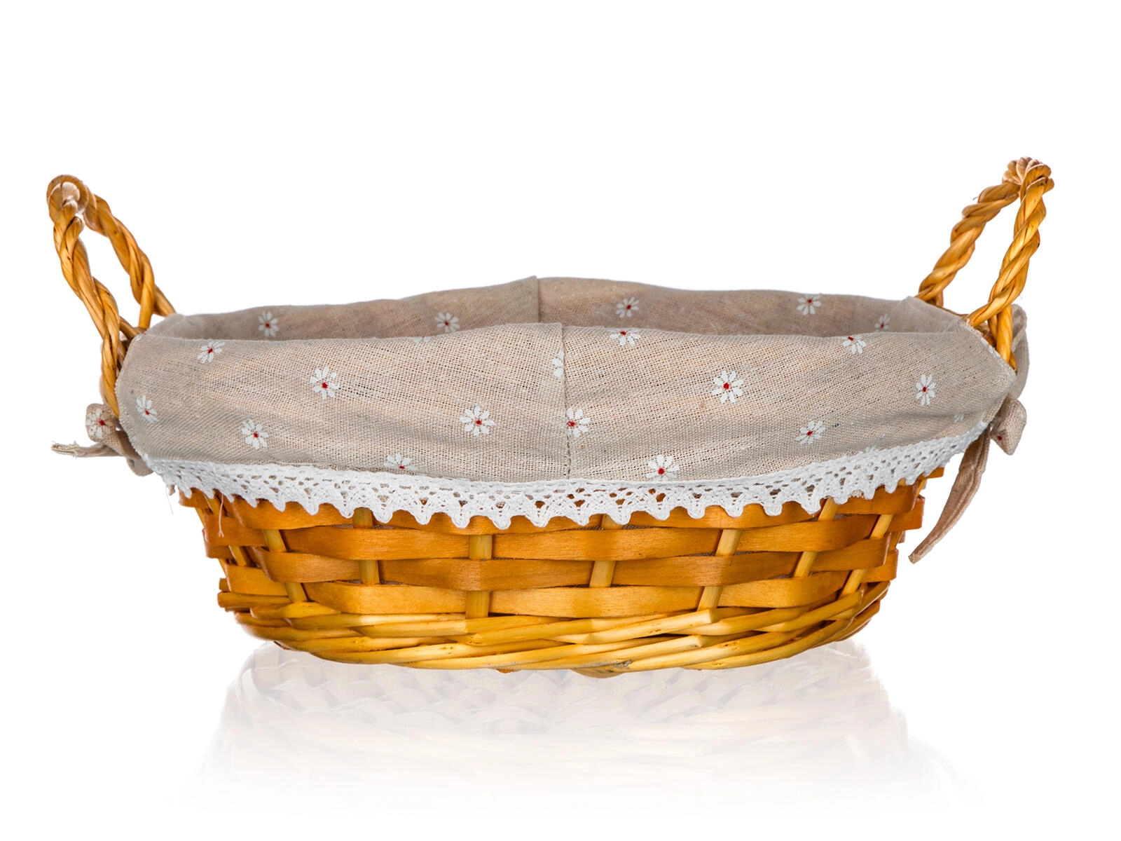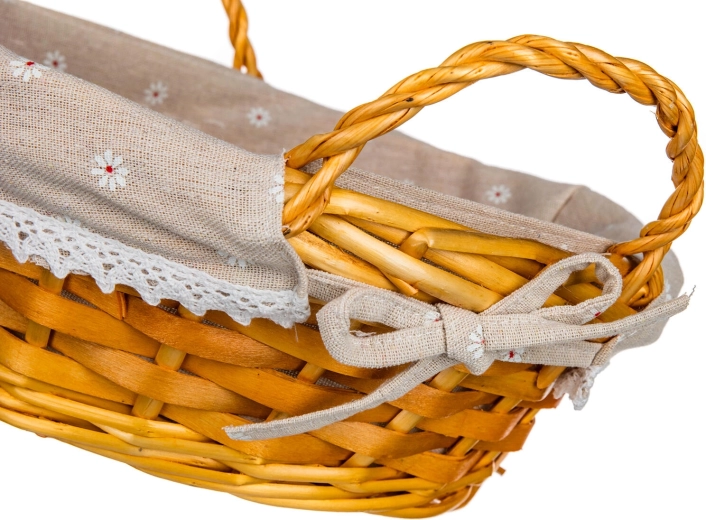 La doublure en coton à petits motifs floraux et bordure en dentelle apporte une touche romantique au panier et protège les décorations à l’intérieur.