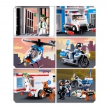 Commissariat, hélicoptère, moto, véhicule de secours, 7 figurines, notice