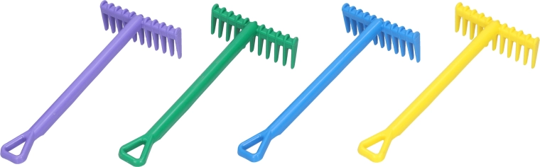 Le râteau est disponible en plusieurs variantes de couleur, afin que chaque enfant trouve sa teinte préférée. Il complète parfaitement un set de plage et favorise la créativité et le développement de la motricité.