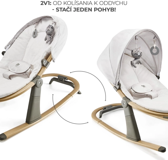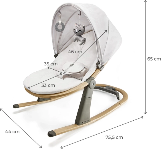 Le transat élégant KINDERKRAFT Elsu Grey est conçu pour le confort quotidien de bébé, de la naissance jusqu’à 9 kg. Grâce au système de blocage astucieux, vous passez facilement d’un doux balancement à un transat stable en un seul mouvement. Les trois positions du dossier assurent un repos agréable et des interactions ludiques, tandis que l’assise moelleuse en matériaux agréables est facile à entretenir : la housse est amovible et lavable à tout moment.